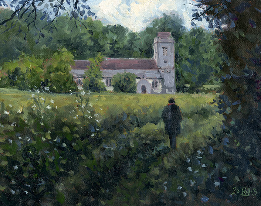 This is a tiny church by the river Tarrant in Dorset. I very much wanted an extremely quiet mood. It was a temptation to add a dash of bright across the