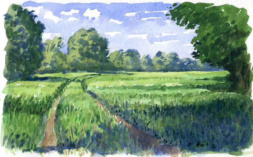 A wee 7in by 5in sketch of a very verdant bit of Dorset.